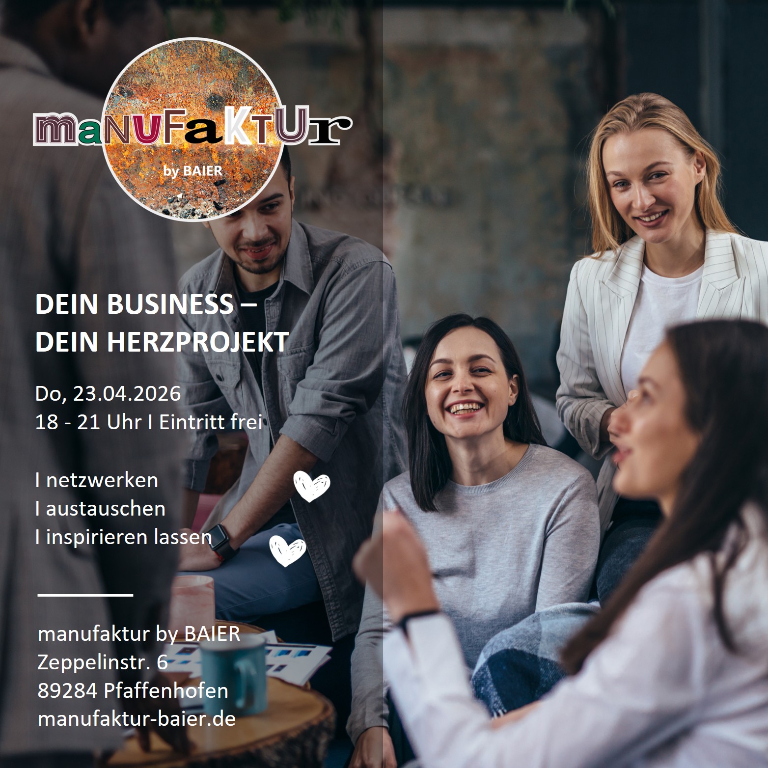Dann komm vorbei zum offenen Networking-Event in der manufaktur by BAIER!