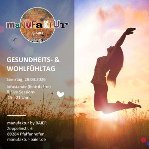 - 15:00 – 15:45💚 Jacqueline – Workshop „Energy in Motion – Energiearbeit“ >> mehr erfahren
