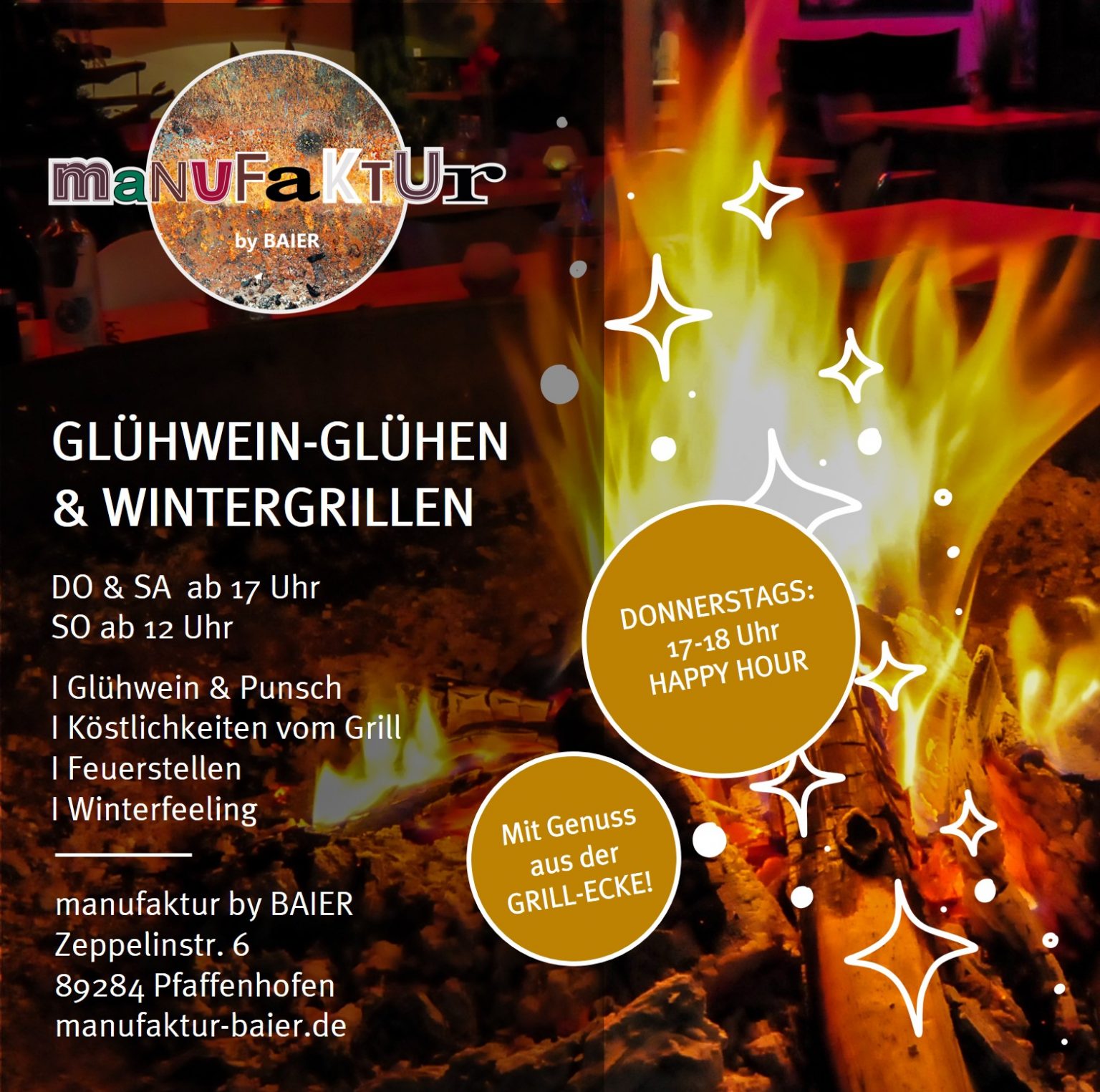 🔥 GLÜHWEIN-GLÜHEN & WINTERGRILLEN 🔥 Viel Wärme. Noch mehr Glühwein und leckere Köstlichkeiten vom Grill. Ob mit Freunden, Kollegen oder auf einen Feierabend-Drink – komm vorbei und genieß das Winter- und Weihnachtsfeeling in der manufaktur by BAIER. Donnerstag 17 – 20:30 Uhr (17-18 Uhr HAPPY HOUR: Glühwein und Punsch je 2,50€) Samstag 17 – 20:30 … GLÜHWEIN-GLÜHEN & WINTERGRILLEN weiterlesen