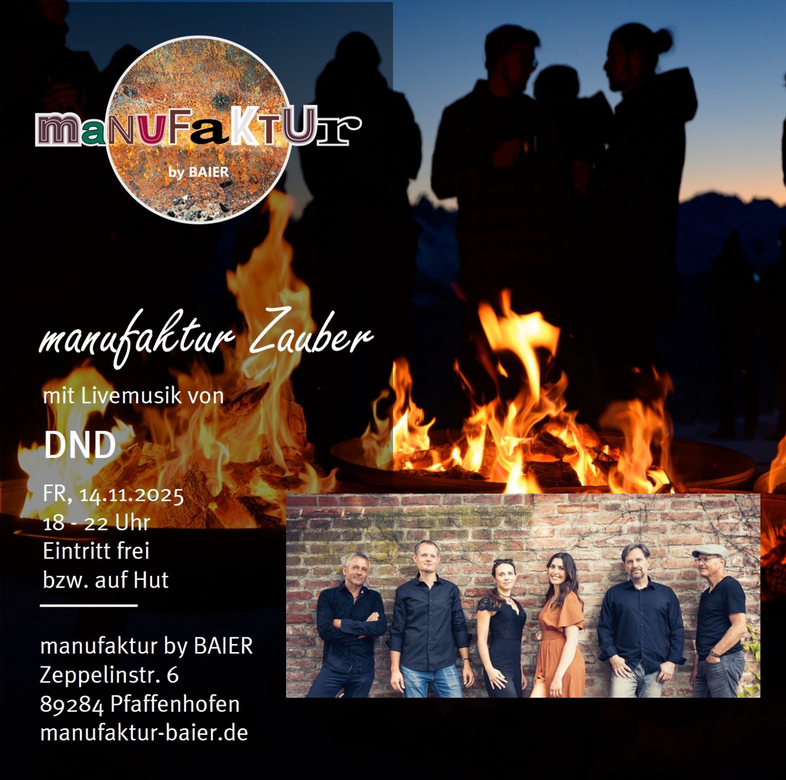 Livemusik von DND – beim manufaktur Zauber 2025! DND präsentiert Coversongs aus den Bereichen Rock und Pop. Vom Klassiker bis hin zu aktuellen Stücken ist Vieles vertreten. Alle Songs werden ausschließlich mit akustischen Instrumenten begleitet. Dabei steht der Ausdruck und der gefühlsstarke Gesang von Nicole und Michael im Vordergrund. Musik, die auf das Wesentliche reduziert … LIVEMUSIK VON DND weiterlesen