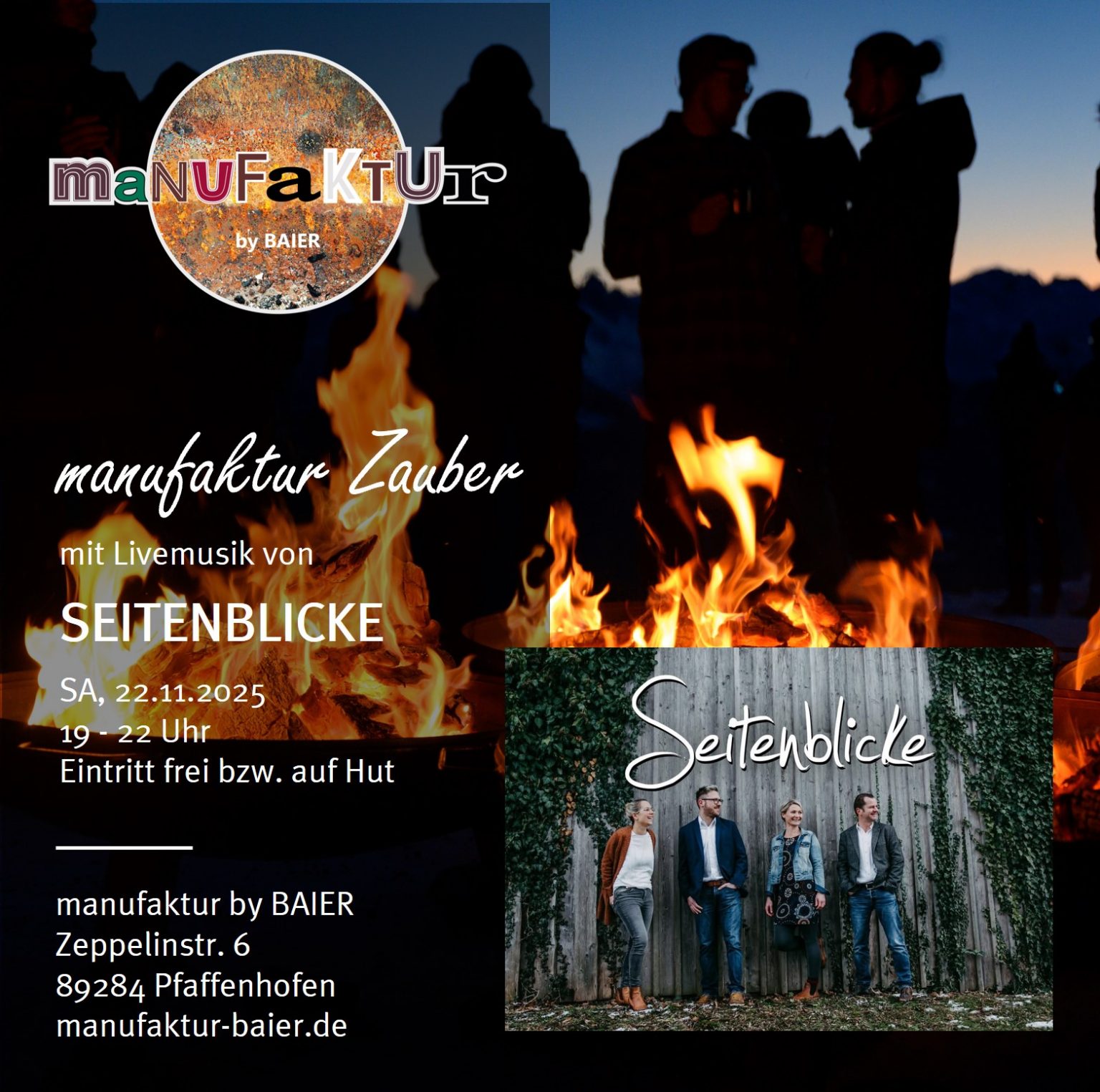 Livemusik von SEITENBLICKE – Unplugged, echt und berührend – beim manufaktur Zauber 2025! Erlebt vier leidenschaftliche Musiker, die mit Klavier, Cajon und mehrstimmigem Gesang bekannte deutsche und englische Songs neu interpretieren. Ob ruhige Balladen oder mitreißende Popsongs – Seitenblicke verzaubert mit handgemachter Unplugged-Musik und ehrlicher Bühnenenergie. Mehr zur Band: Instagram @seitenblicke_band Weitere Infos zum manufaktur … LIVEMUSIK VON SEITENBLICKE weiterlesen